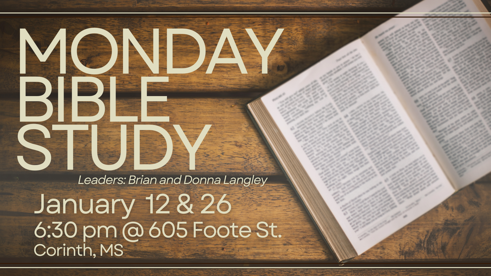 10:00 am - 11:00 am Women’s Bible Study – Iuka January 22 @ 10:00 am - 11:00 am Women’s Bible Study – Iuka