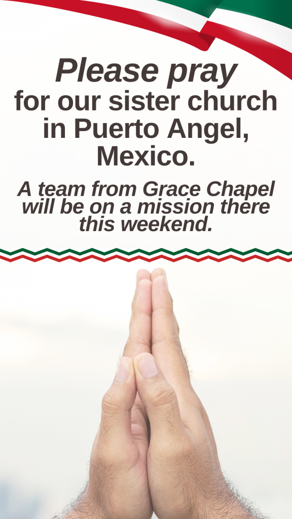 I want to thank everyone from Grace Chapel for all the support that was given to the mission team that went to Mexico this March. We knew that prayers were being lifted up everyday while we were there for safe travels,health, and spreading the word of the truth of Jesus. We were so grateful for Don as he guided us through airports and also guiding us spiritually as we formed a mission team. Dr.Pratt and his sister Laura are both so dedicated to healing people physically and leading them to Jesus.Laura’s work at the mission base at Roca Blanca is truly amazing.There are many stories that I will leave to other team members to tell about all that happened there. I wish that everyone could experience worshiping on top of a mountain in a church with a dirt floor and feel the power of the Holy Spirit moving through every soul present. As I reflected on this I realized that when the Holy Spirit is present as we worship that we are on top of a mountain, no matter where we are on this earth.